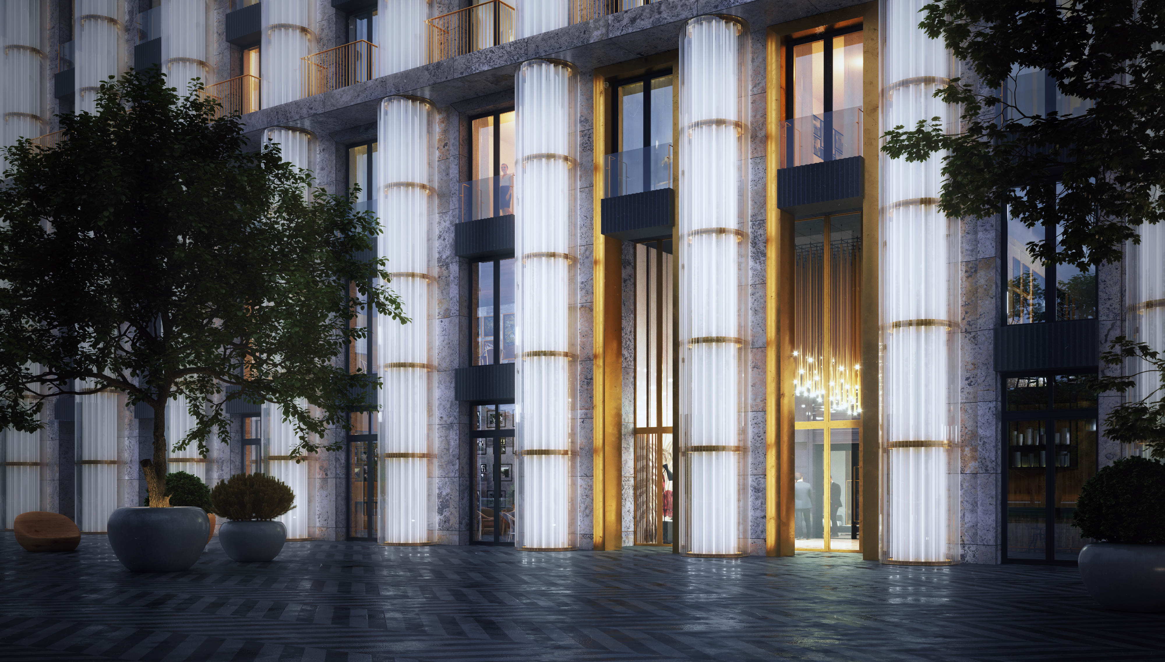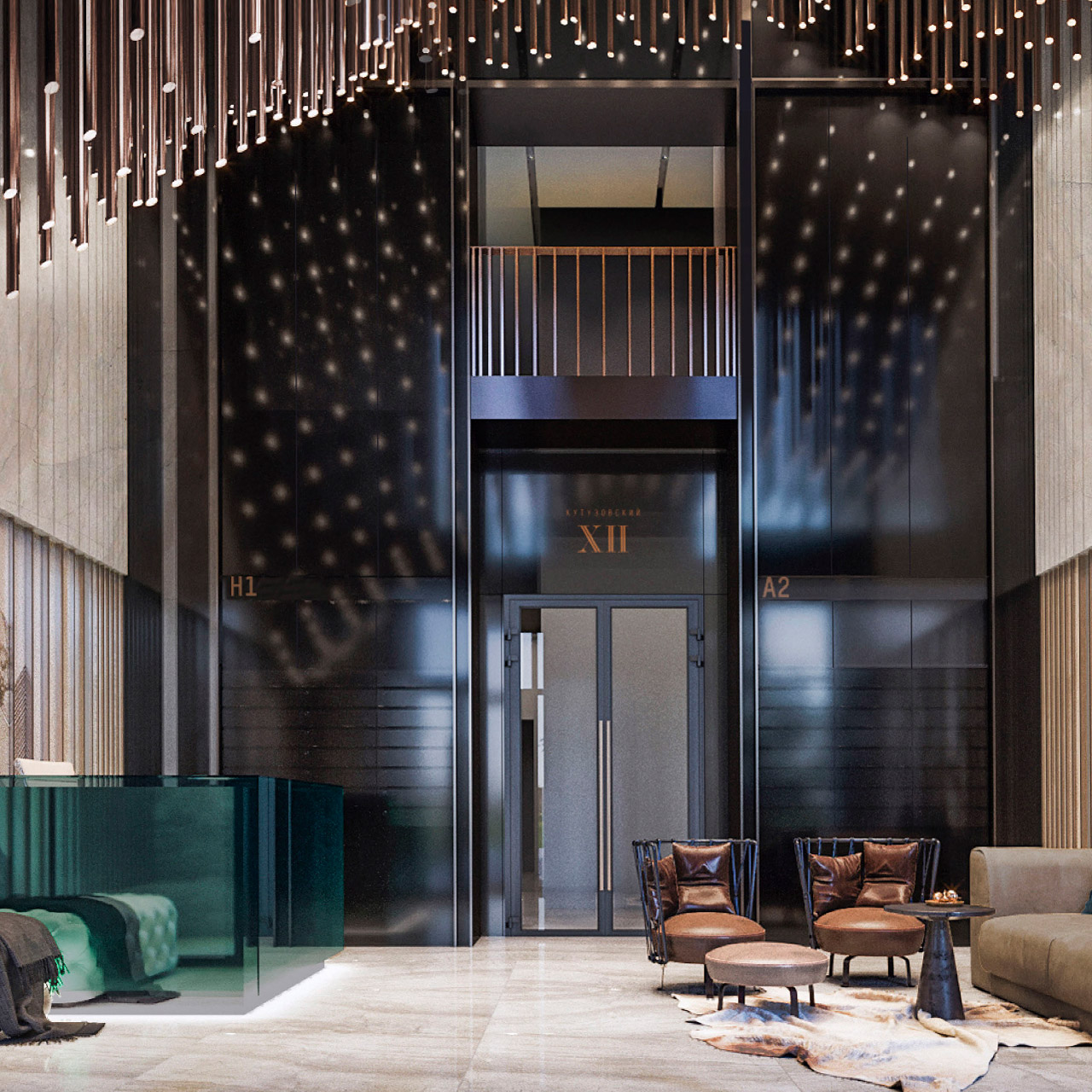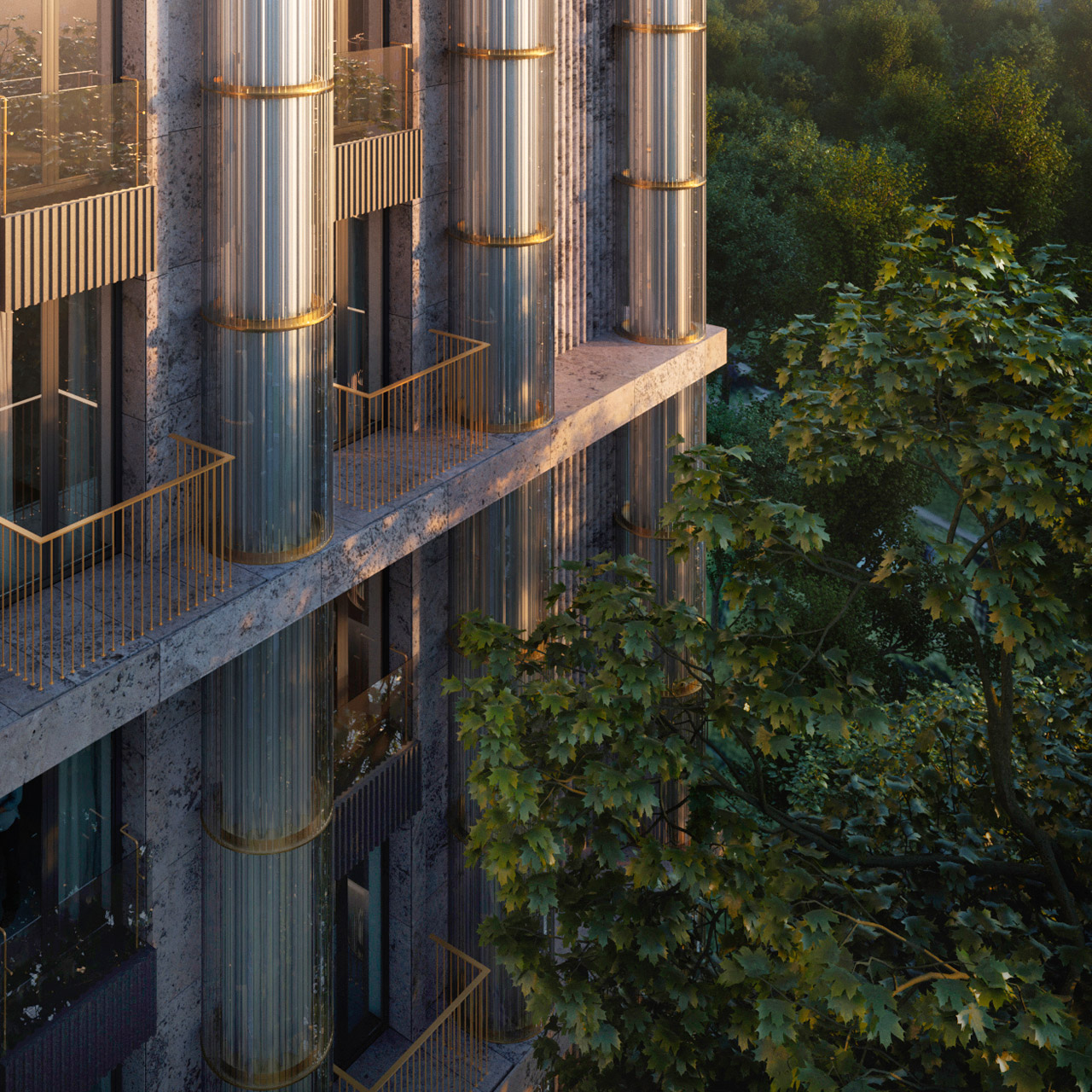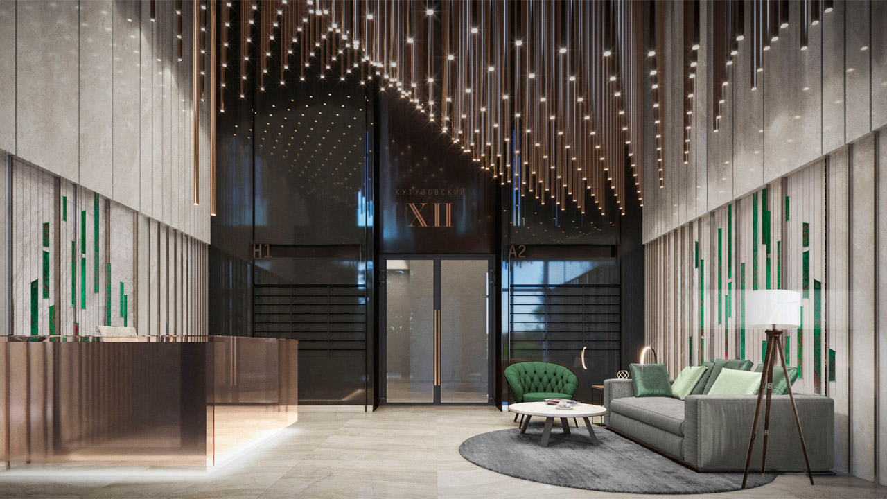 От капителей колонн и отделки входных групп — до светильников в лобби и элементов интерьера. Благородная латунь стала лейтмотивом дома на Кутузовском, 12.