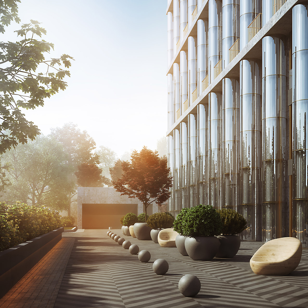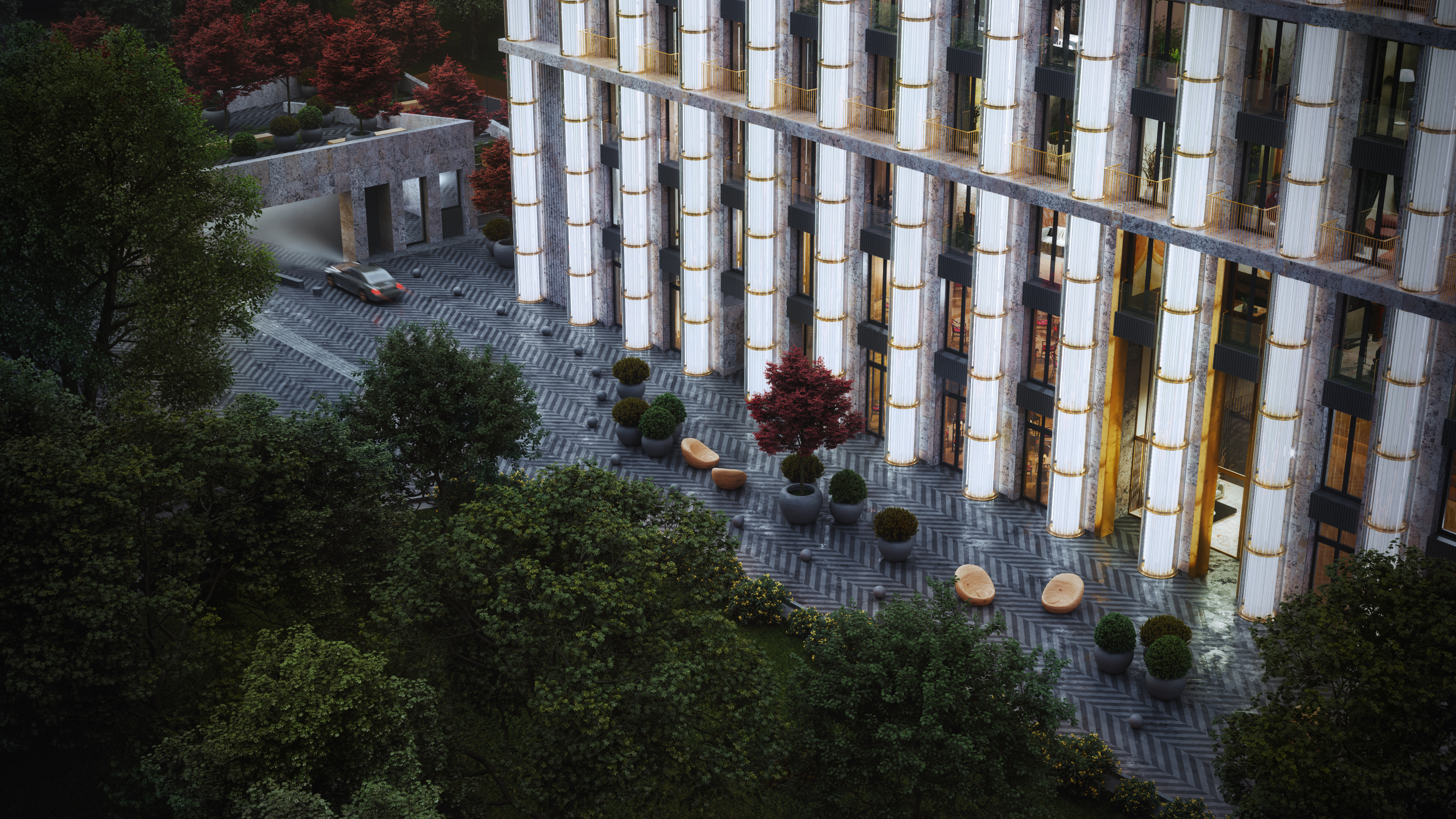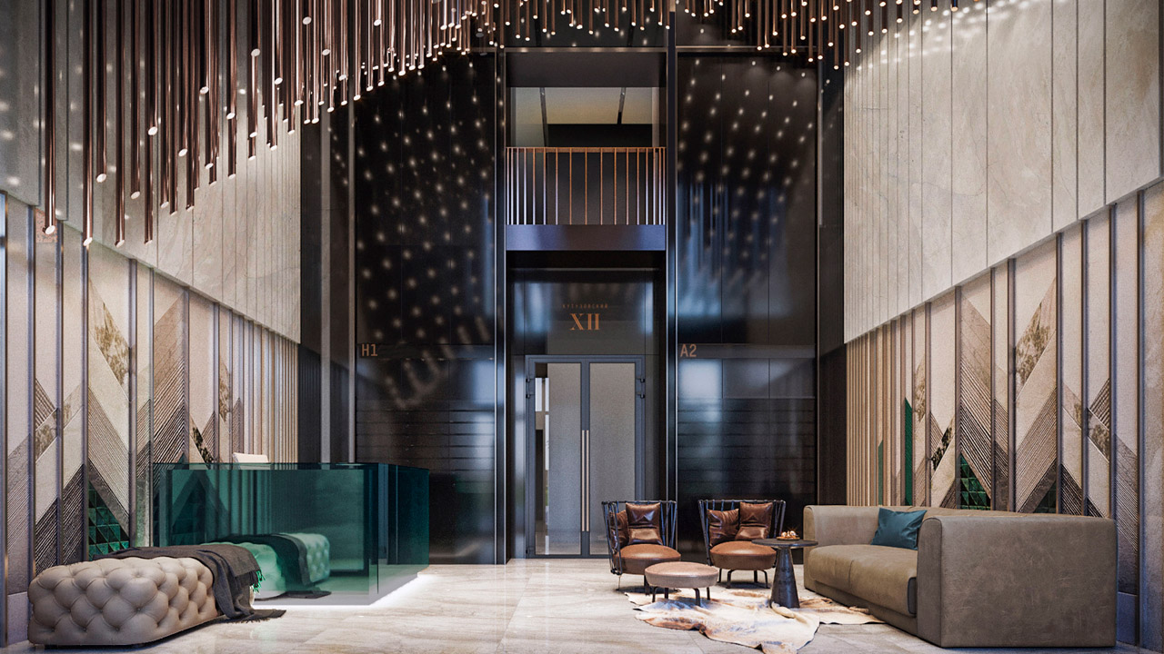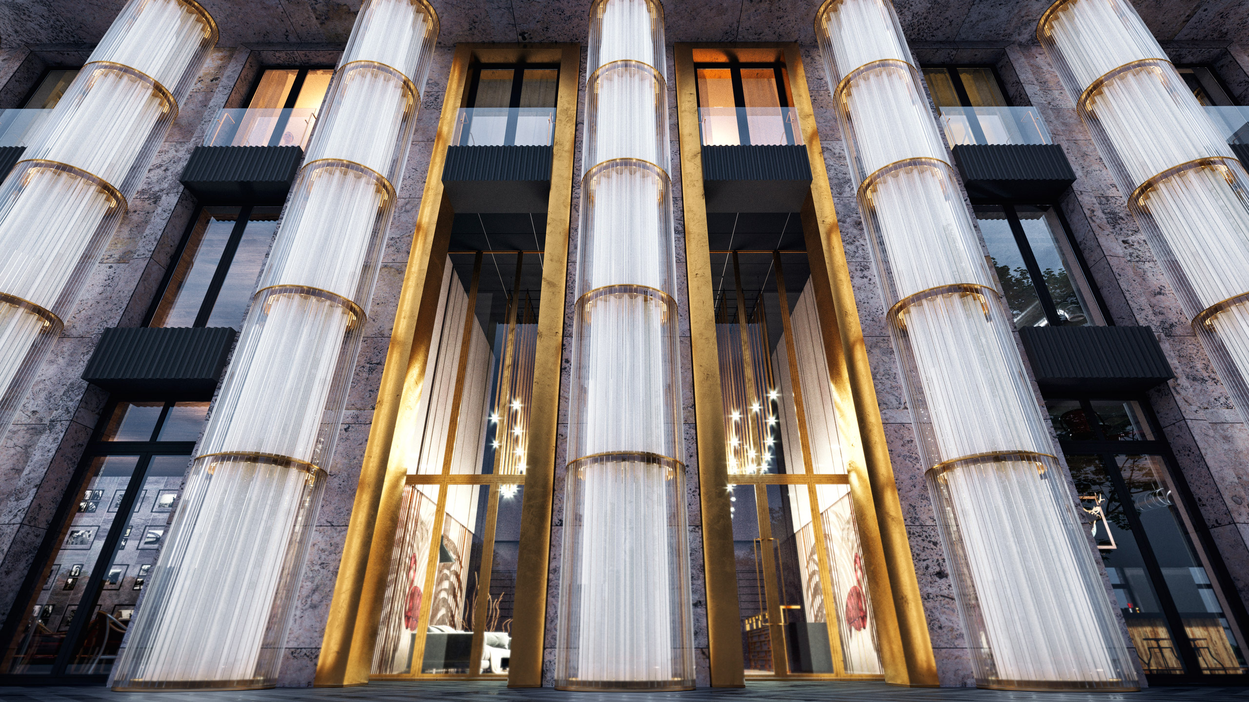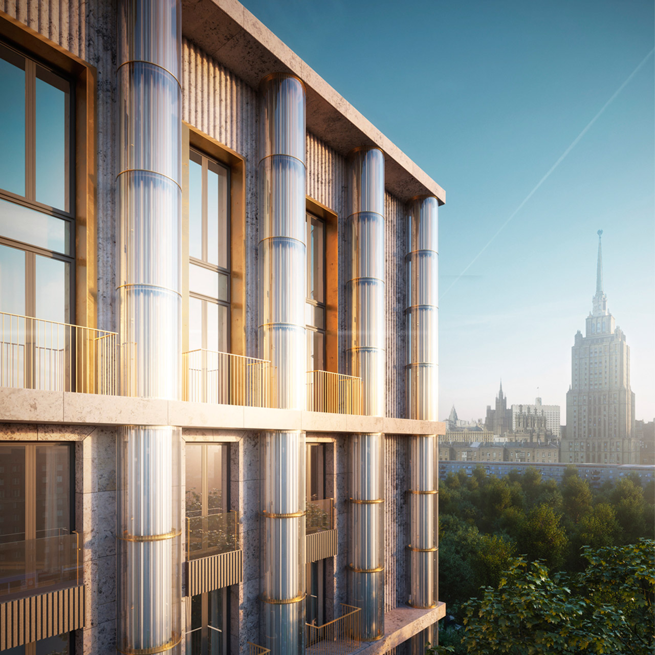 От капителей колонн и отделки входных групп — до светильников в лобби и элементов интерьера. Благородная латунь стала лейтмотивом дома на Кутузовском, 12.